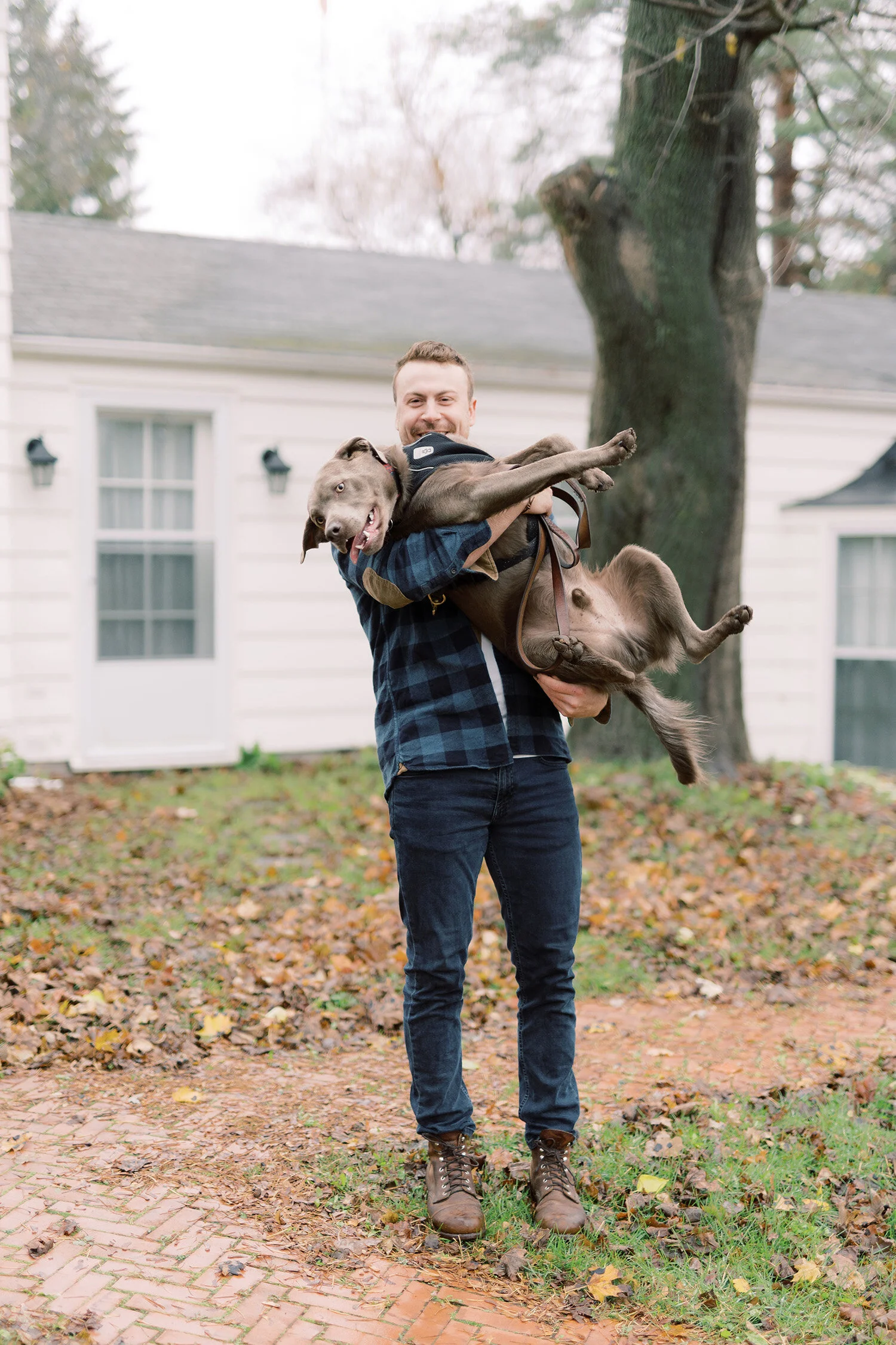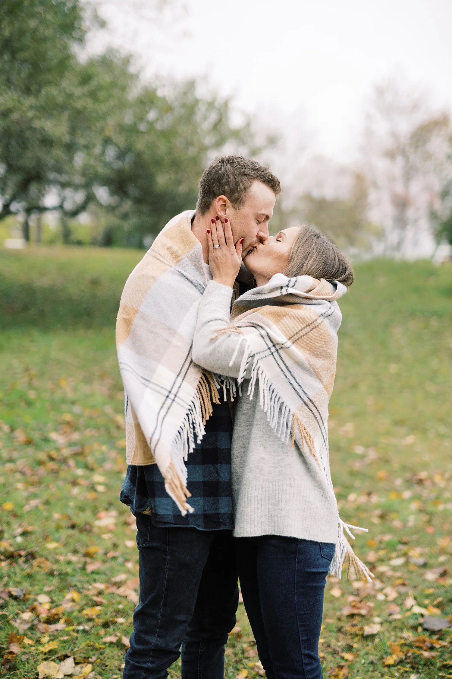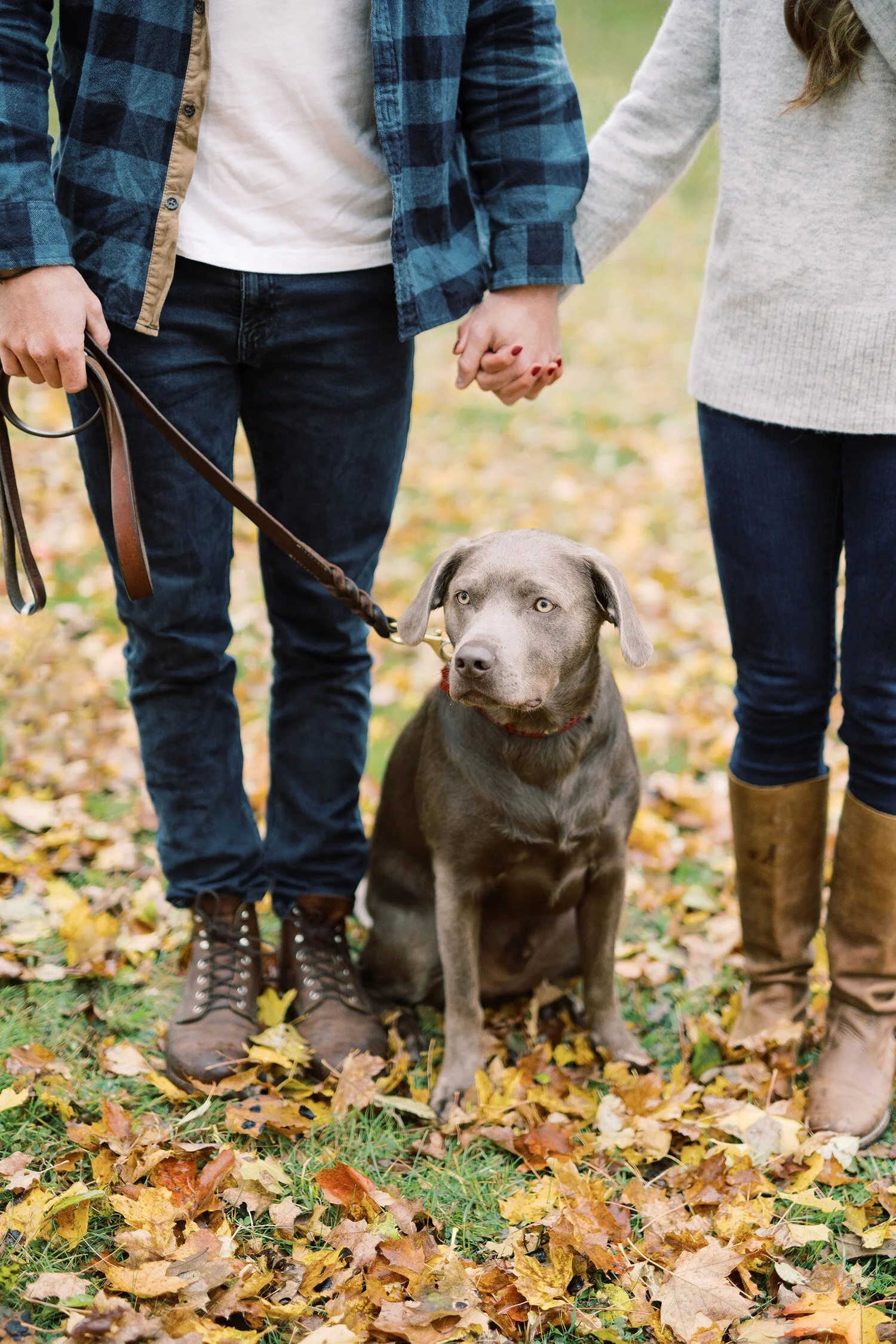 Stephanie and Michael wanted to have their engagement session done in the Fall and what we ended up with was more like a chilly, rainy, winter day AND I LOVED IT! I am so glad we didn’t reschedule because the weather made this session even more cozy and sweet. Steph and Mike brought a blanket to snuggle up with, a bottle of champagne to pop, AND their super sweet dog Levi. Let’s be honest, I could have done a whole session of just him haha!